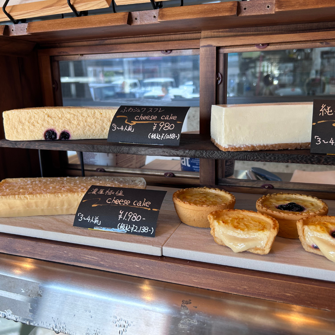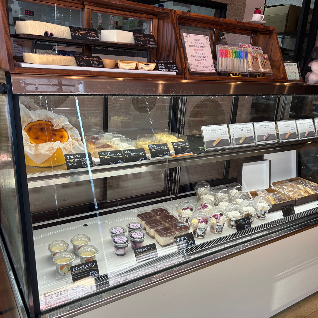 店内のショーケース。プリンやバスクチーズケーキ、ティラミスなど